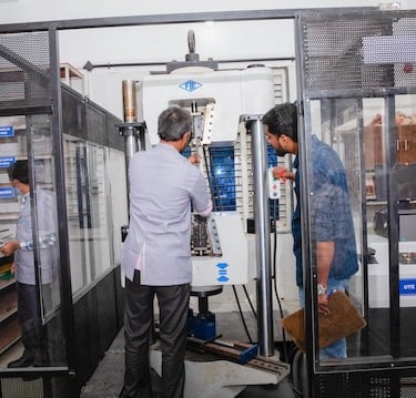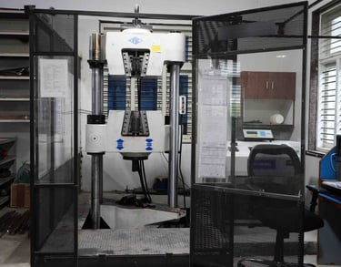 Our laboratory is equipped with the FIE “UTE120HGFL” Electronic Universal Testing Machine with hydraulic grip front loading capabilities. This advanced UTM supports a wide range of tests involving tension, compression, bending, transverse, and shear loads, ensuring consistent and dependable performance.